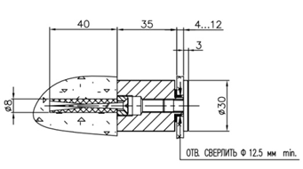 30 мм | 15 мм | 4-12 мм | без покрытия | нержавеющая сталь | 12.5 мм | 10 кг. | Бетон/кирпич/камень | ![]() |