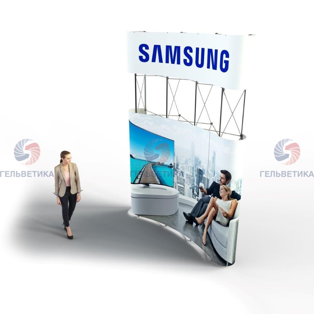 Основное предназначение pop-up стенда «MEDUSA» — достойное представление Вашей фирмы на выставках и презентациях. Размер рекламной площади начинается от 1 кв.м. (стойка ресепшн) и может достигать десятков квадратных метров — (составные комбинированные стенды).