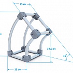 Основа конструктора состоит из 7-ми элементов, которые представляют собой неразборные прямоугольные призматические блоки, размерами от 15х15х15 см до 15х15х120см, состоящие из пластиковых узлов в углах (прочнейший стеклонаполненный полиамид) и алюминиевых трубок ф 16х1 мм.