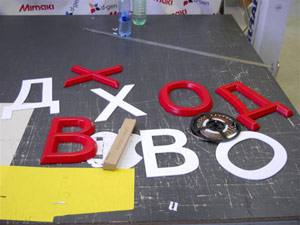 - Если задняя подложка не влезает в корпус буквы, подгоняем ее макетным ножом.